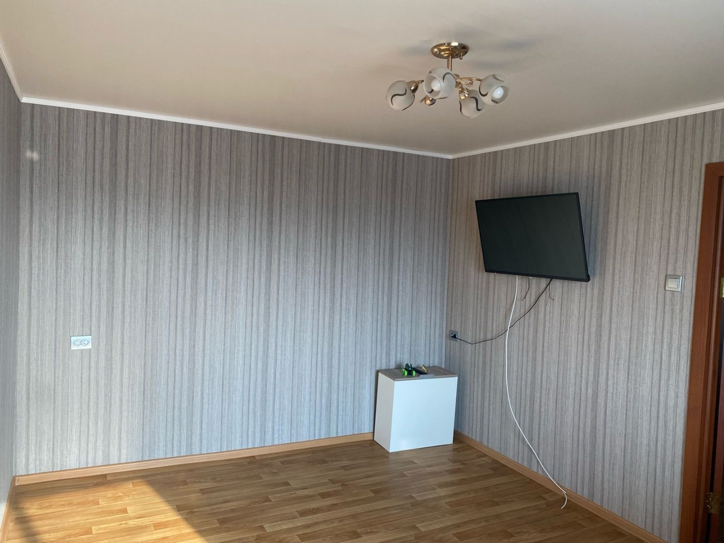 Укомплектована: Кухонный стол, кухонный гарнитур с мойкой и смесителем, варочная поверхность, духовой шкаф, шкаф-купе в прихожей, холодильник, стиральная, платяной шкаф в спальне, телевизор.