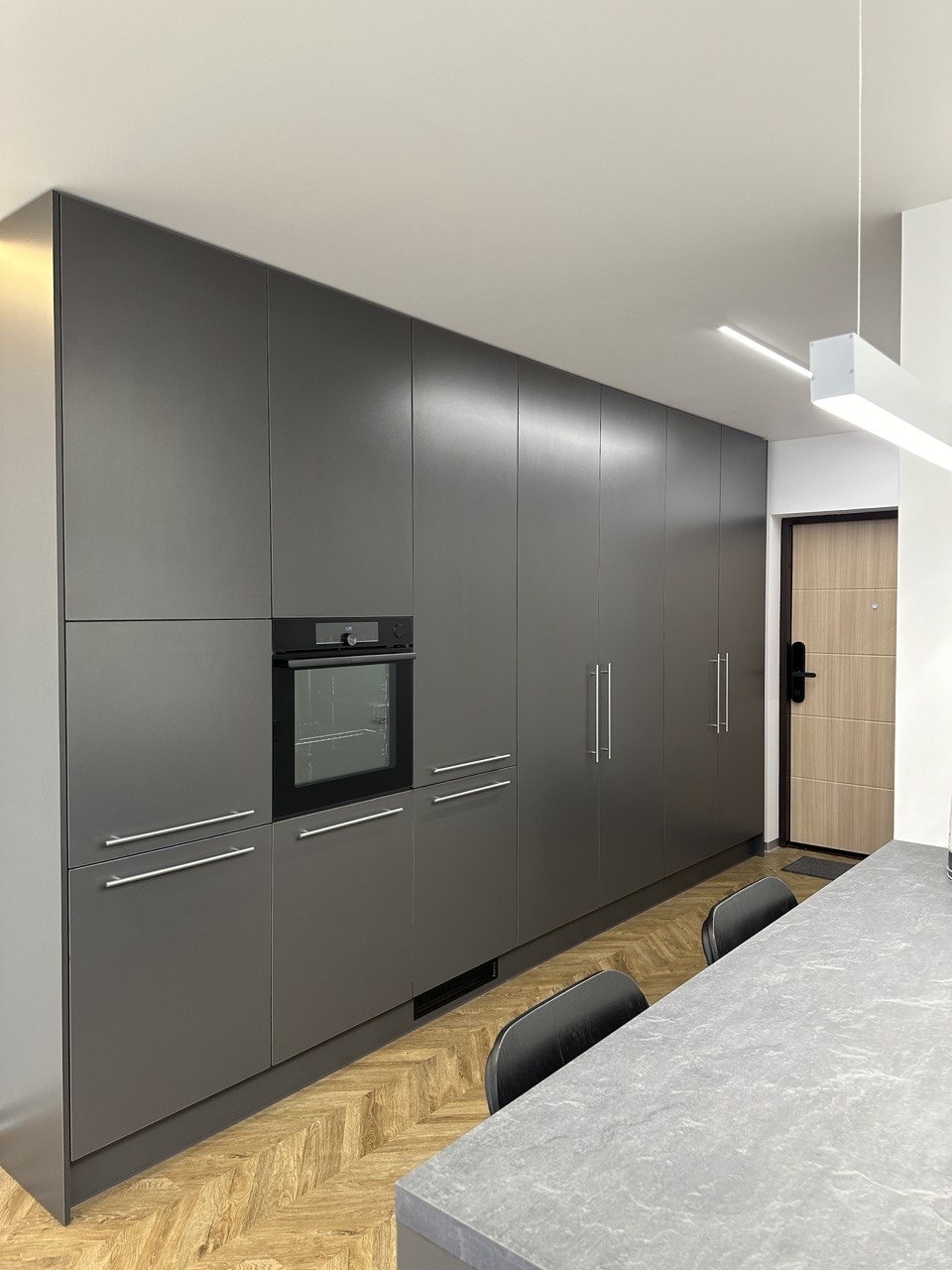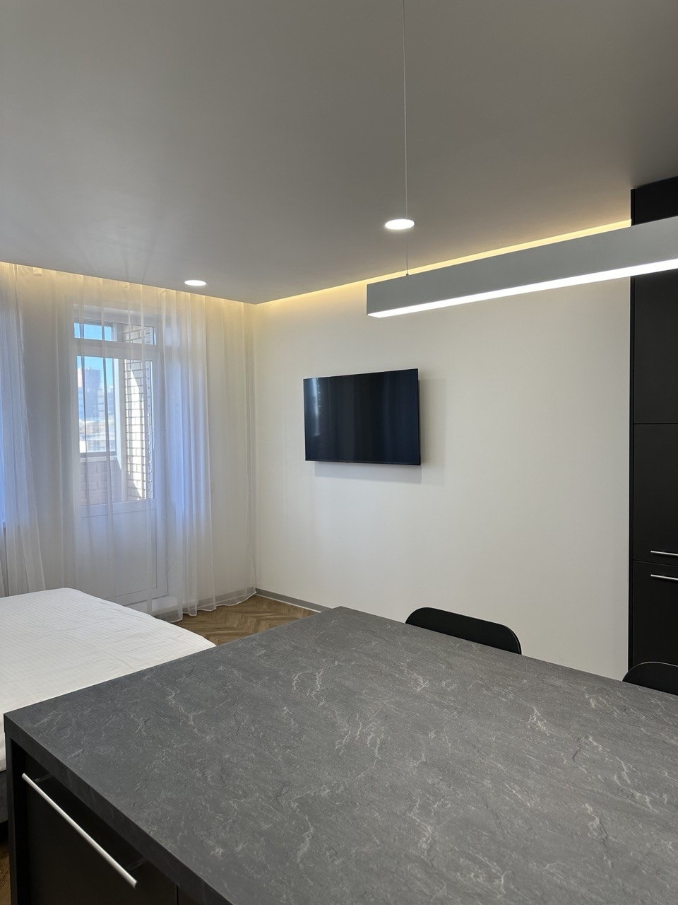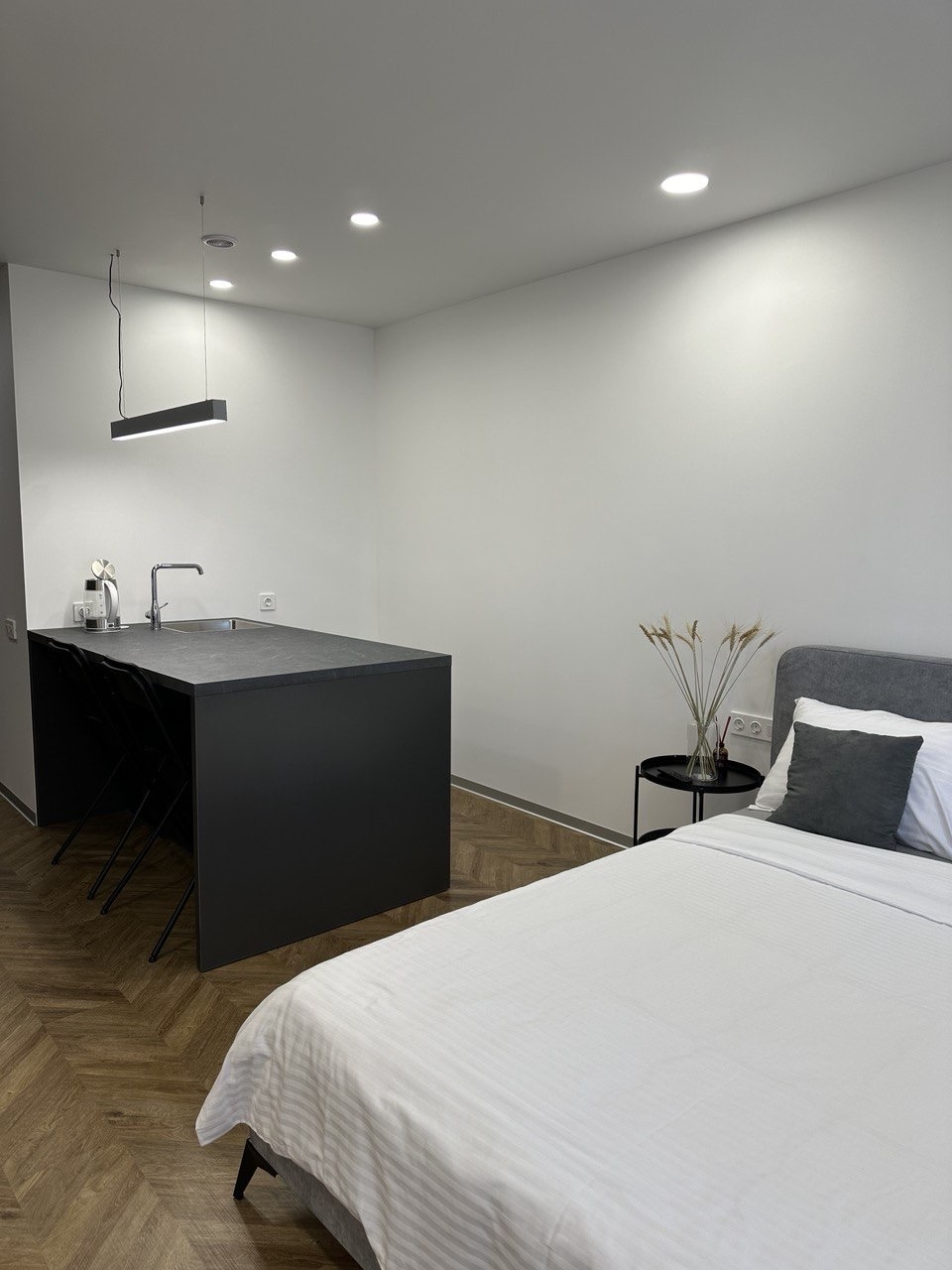Квартира оборудована всем необходимым для комфортного проживания:большая двуспальная кровать с удобным ортопедическим матрасом Орматек 160*200 см и постельным бельем высокого качества,полноценная кухня с островом укомплектована новой техникой Gorenje духовой шкаф с функцией пара, индукционная плита, микроволновая печь и полным набором посуды,встроенный холодильник Samsung с морозильной камерой и вместительная система хранения в кухне окажутся несомненным плюсом,полноценное рабочее место с индивидуальной подсветкой и розетками для работы электроники,smart-телевизор с экраном 50 дюймов и высокоскоростной Wi-Fi,сантехника европейских марок Grohe, GSI и Franke, сенсорная стиральная машина с отпариванием и сушилкой, 2 больших шкафа для личных вещей,гладильная доска с утюгом.