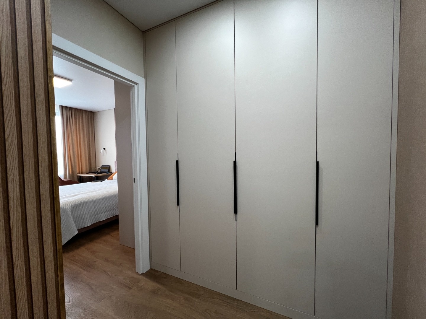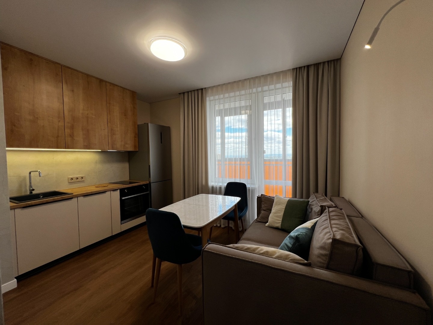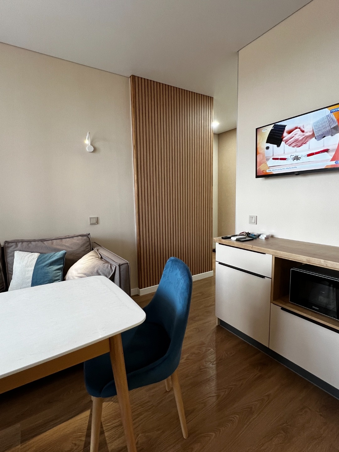 Мебель изготовлена по проекту и на заказ согласно размерам. Предметы интерьера подоброваны дизайнером, реализованы разные световые решения от приглушенного света до максимально яркого. Достаточное количество мест хранения. Два встроенных шкафа, шкафы в ванной и на кухне, подвесные тумбы. На кухне уютная зона отдыха с диваном.