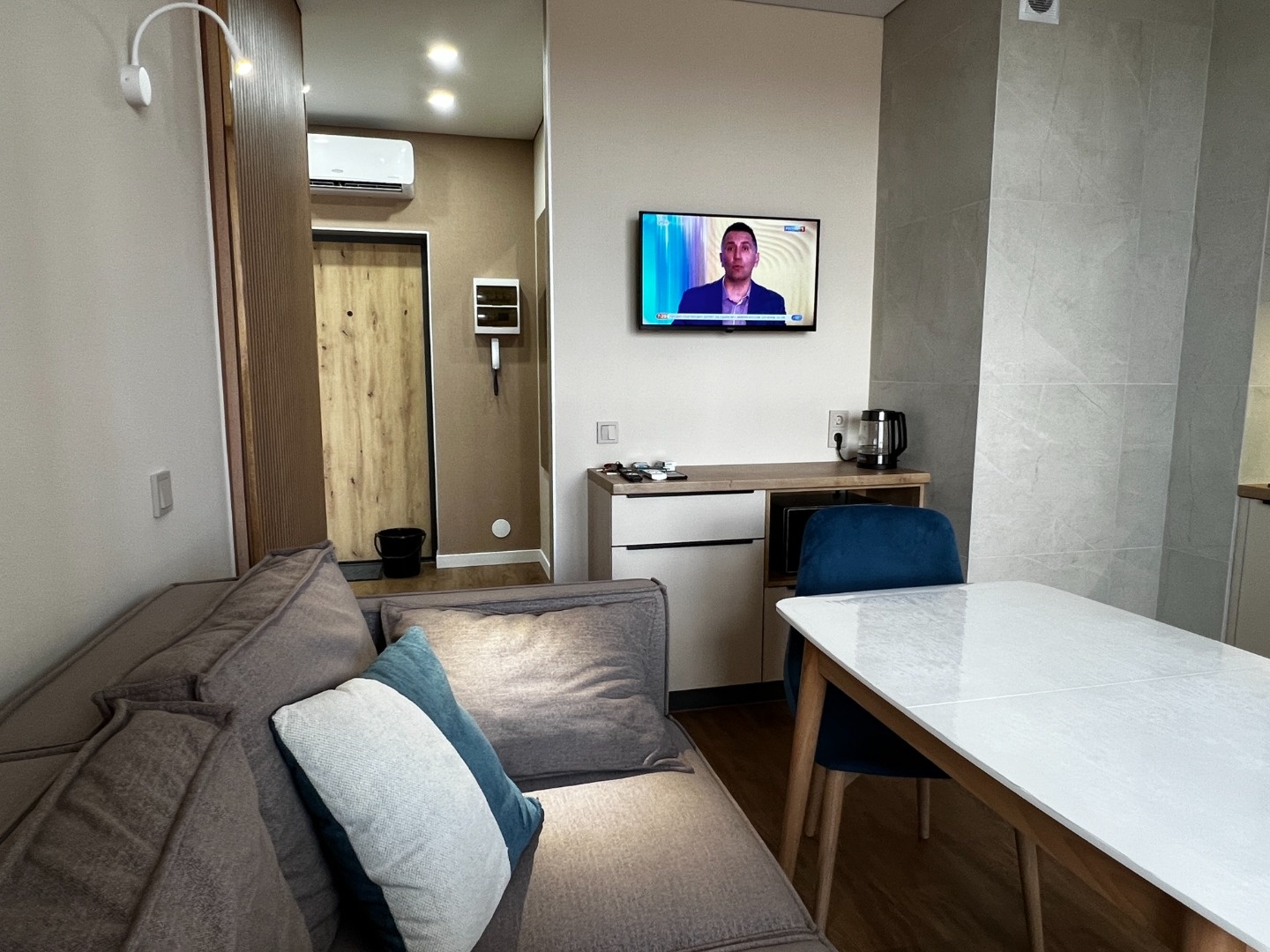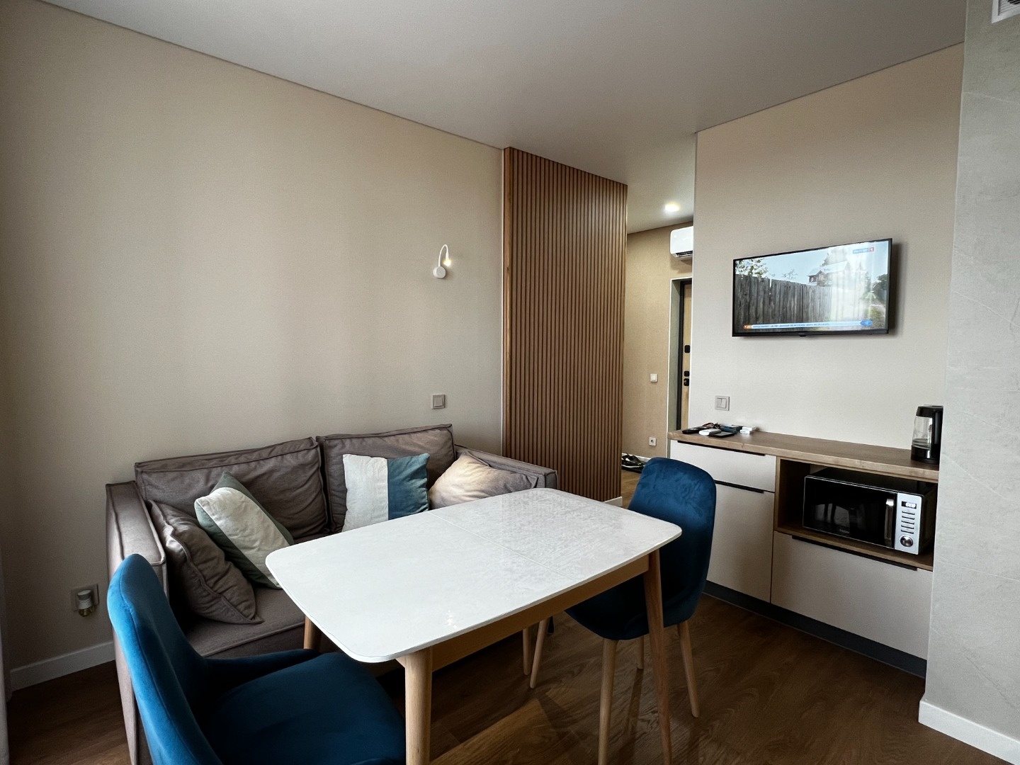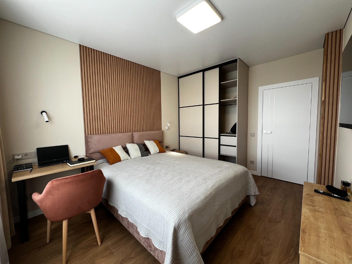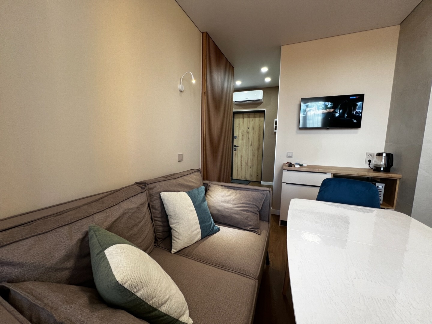 Мебель изготовлена по проекту и на заказ согласно размерам. Предметы интерьера подоброваны дизайнером, реализованы разные световые решения от приглушенного света до максимально яркого. Достаточное количество мест хранения. Два встроенных шкафа, шкафы в ванной и на кухне, подвесные тумбы. На кухне уютная зона отдыха с диваном.