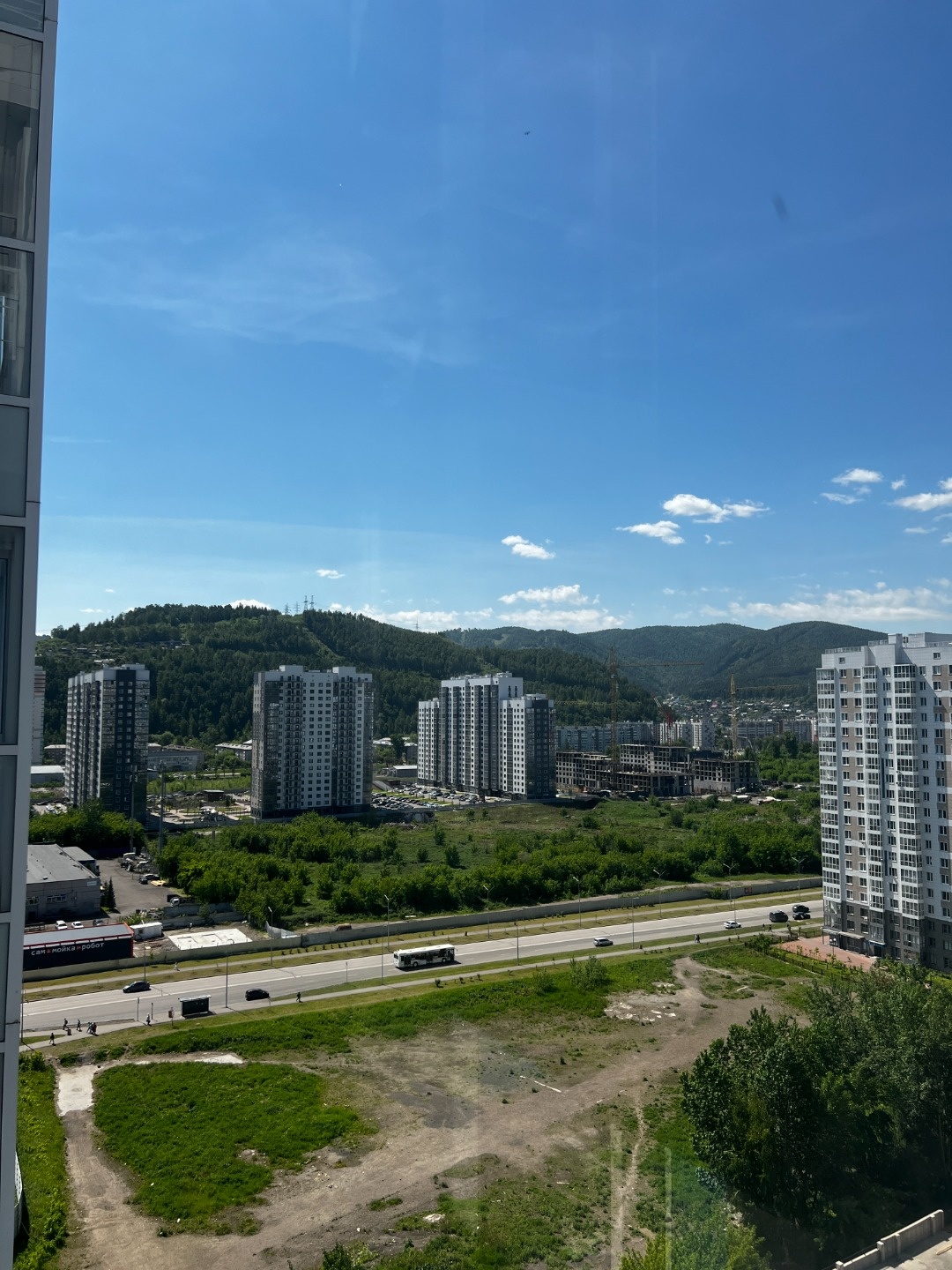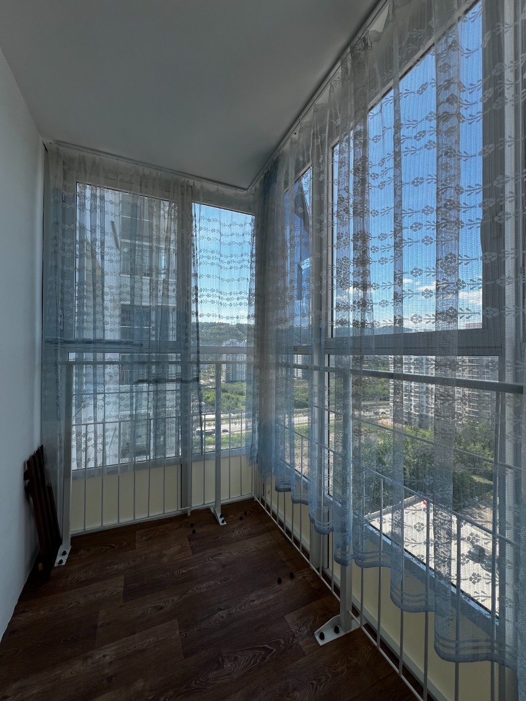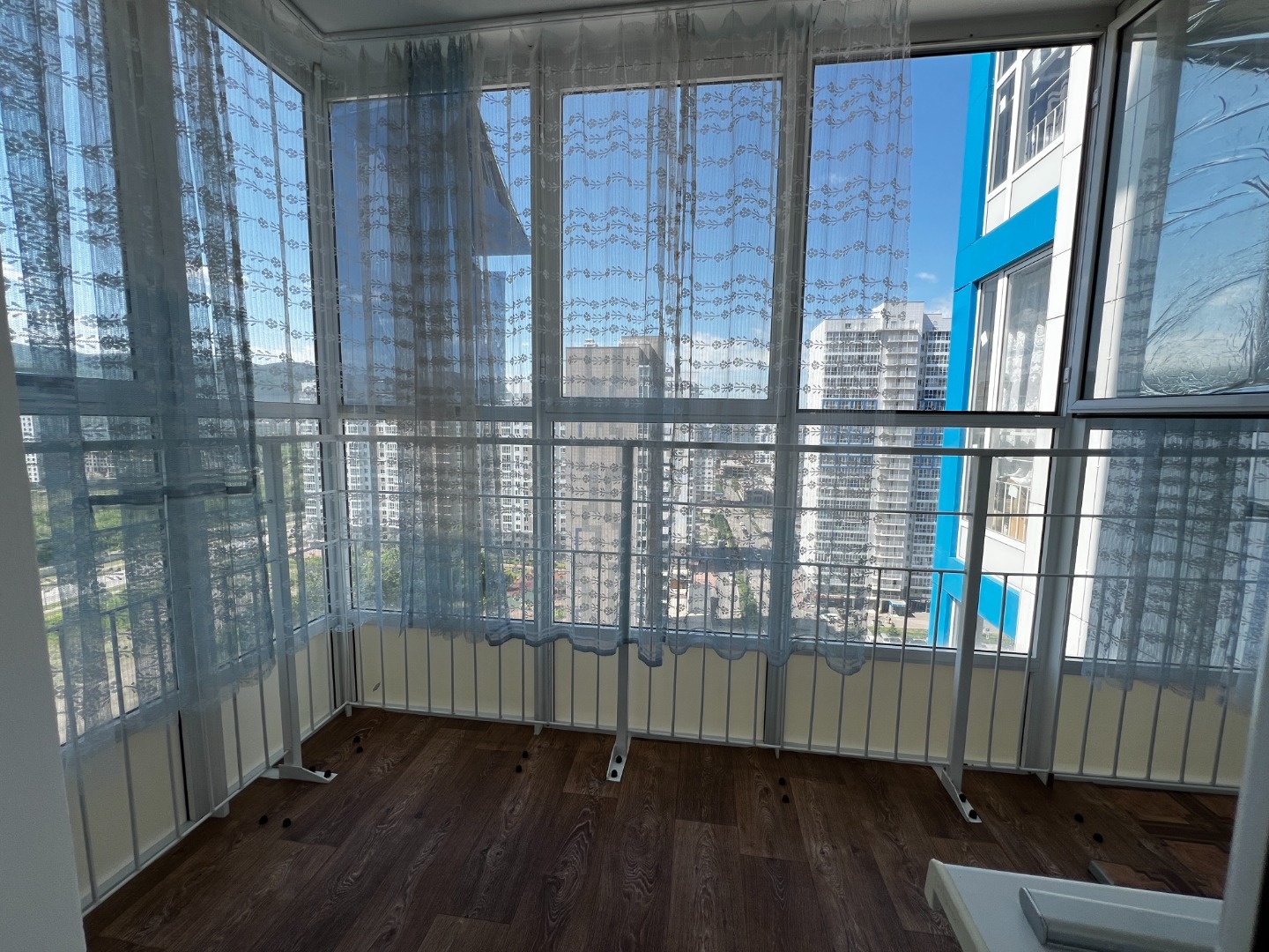 Балкон остеклен - красивый вид на горы и на променады микрорайона.