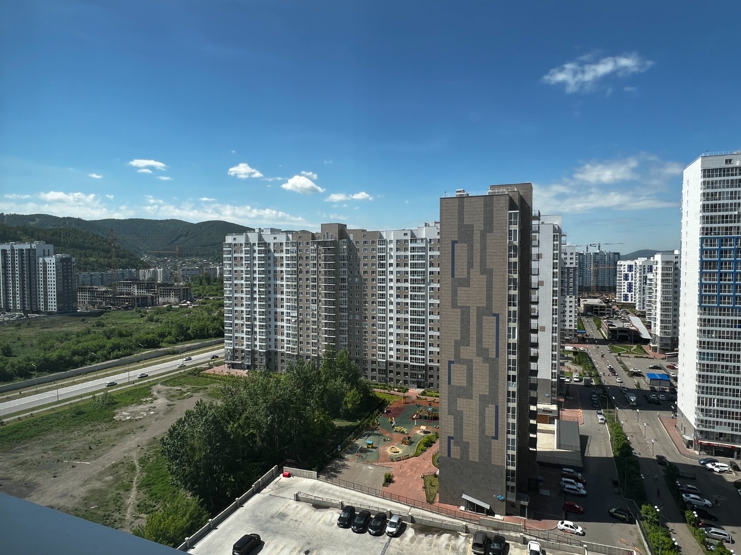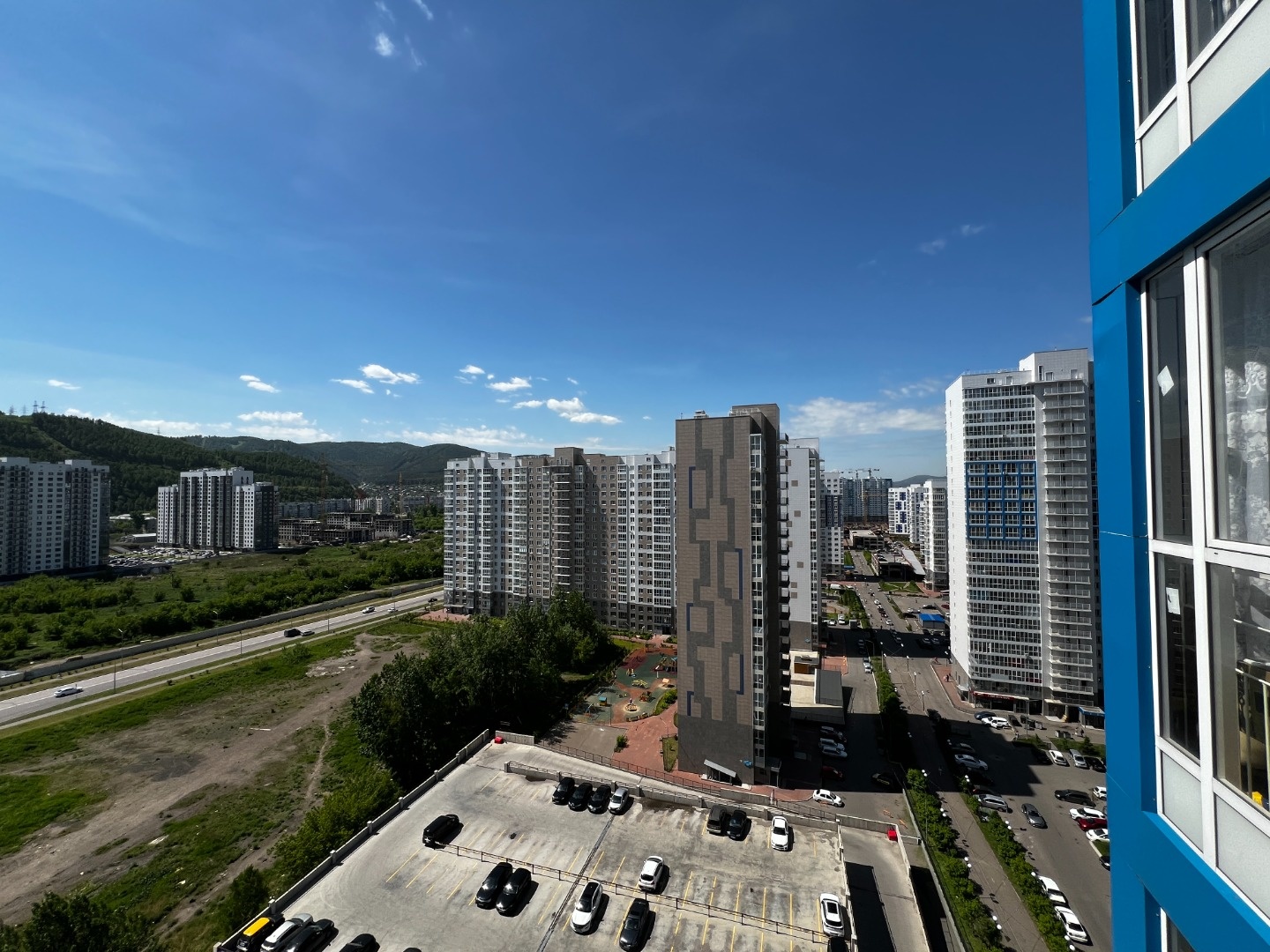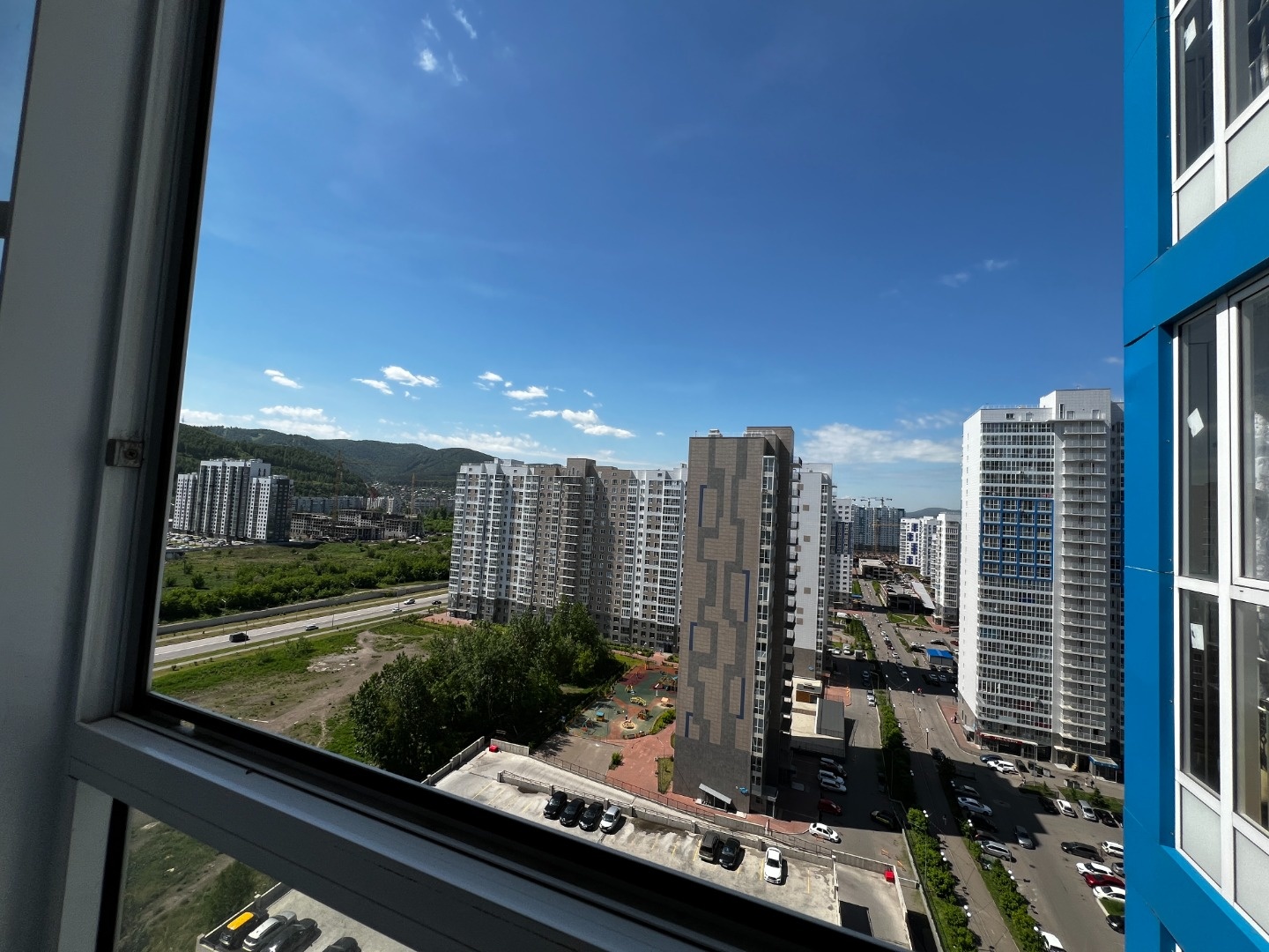 Балкон остеклен - красивый вид на горы и на променады микрорайона.