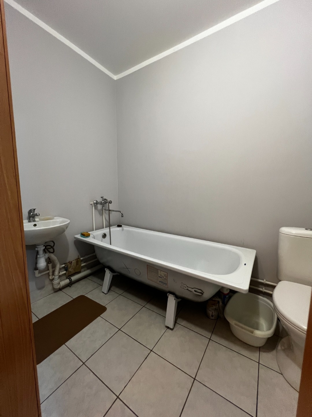 Сан.узел с ремонтом от застройщика, есть ванна, раковина, крючки.