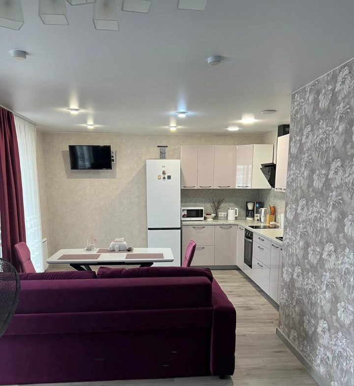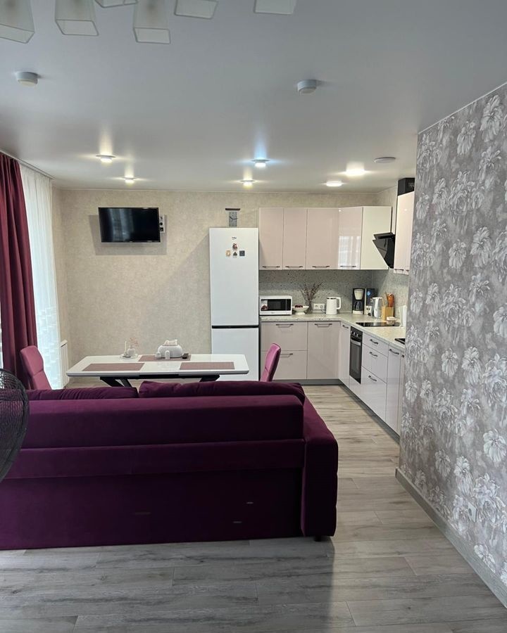 Евро трехкомнатная квартира, две спальни (12+16) кв.м. и кухня-гостиная 31 кв.м. Два сан узла. Два балкона. Гардеробная.