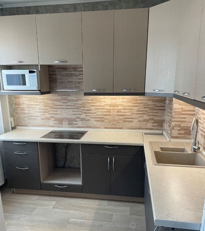 Омтается мебель. Ремонт только в кухне - в остальных помещениях ремонт от застройщика.