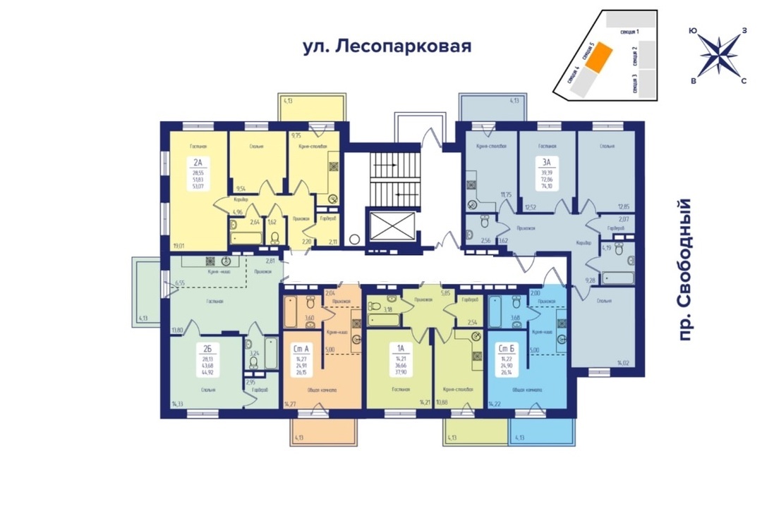 • подземный паркинг с доступом через грузовой лифт в каждом доме.