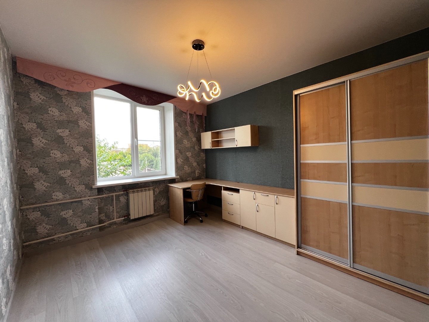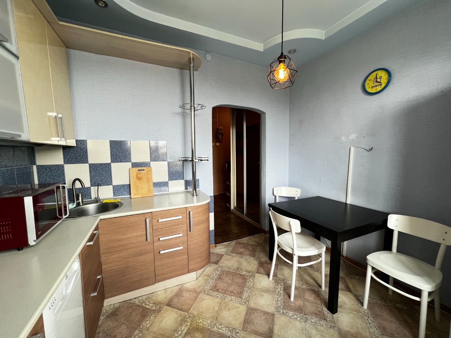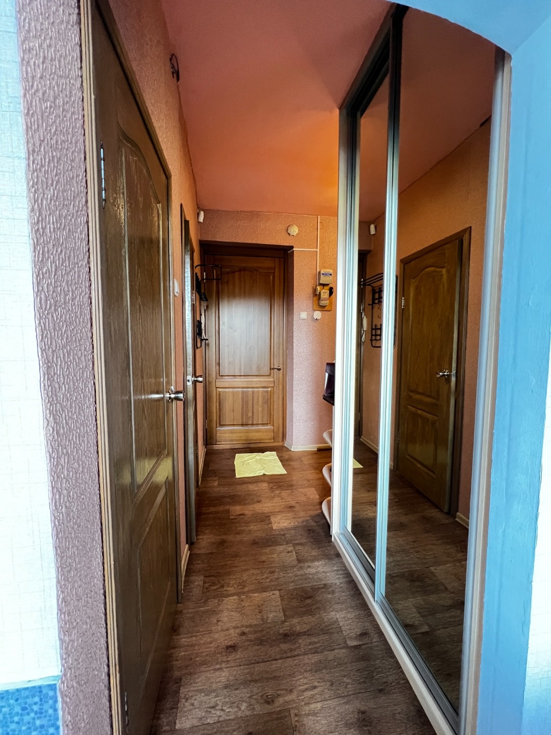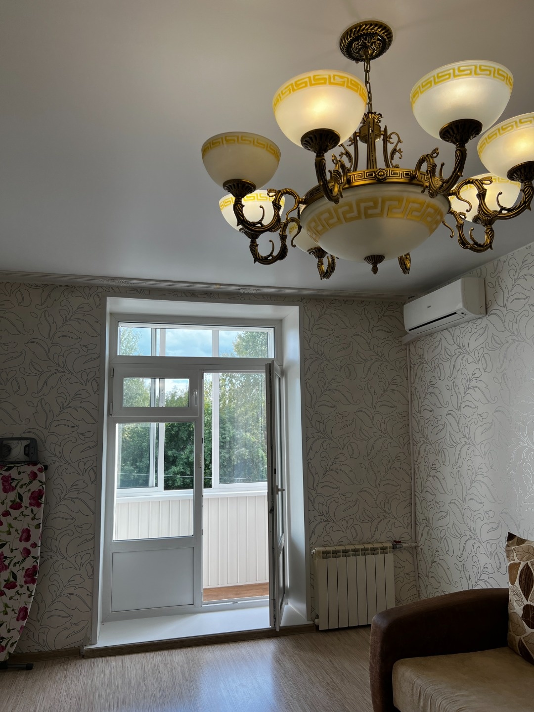 В квартире сделан евроремонт. Заменены трубы, сантехника, установлены радиаторы. Кухонный гарнитур, мебель в коридоре и комнате изготовлены на заказ по индивидуальному проекту — остаются покупателю. Большие пластиковые окна с широкими подоконниками, в обеих комнатах натяжные потолки и ламинат. Современное точечное освещение и люстры. В одной комнате установлен кондиционер. Коридор с кладовкой, куда помещается стеллаж. Две входные двери: одна — из массива дерева, вторая — качественная железная, из толстого металла.
