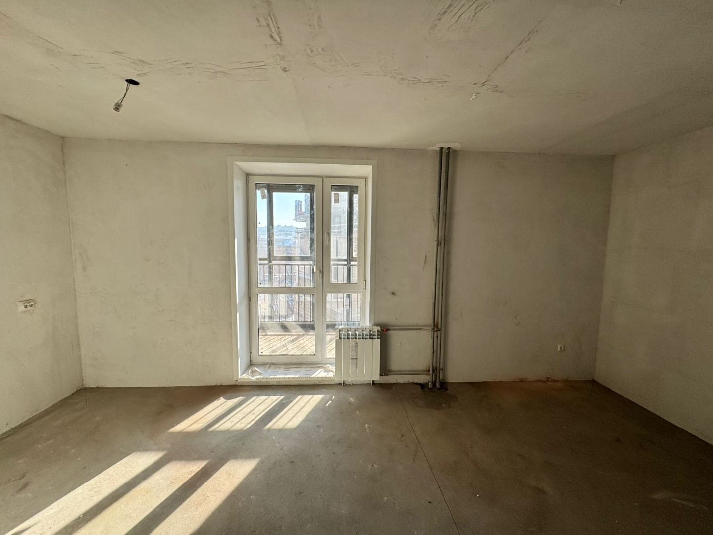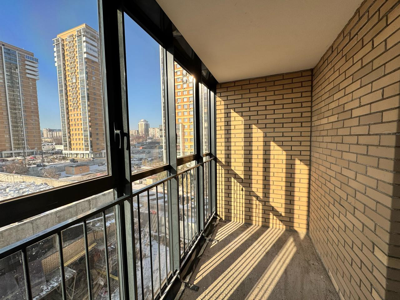 Современная и удобная планировка, есть ниша под постирочную, панорамное окно в пол. Жилая площадь 16.6 кв.м. - квадратная форма.